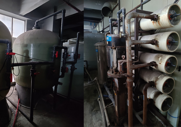 客户需求:老厂房有一套10吨每小时的一级反渗透,机器用了快10年,机器老化,水质不达标,现在出水水质电导率>15μS/cm@25℃,不能满足用水需求,需求重新新购几套双级纯星空(中国);